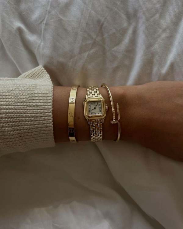 Toda nuestra colección de joyas está fabricada en acero inoxidable de alta calidad y recubierta con oro de 18 quilates mediante Physical Vapor Deposition (PVD).
