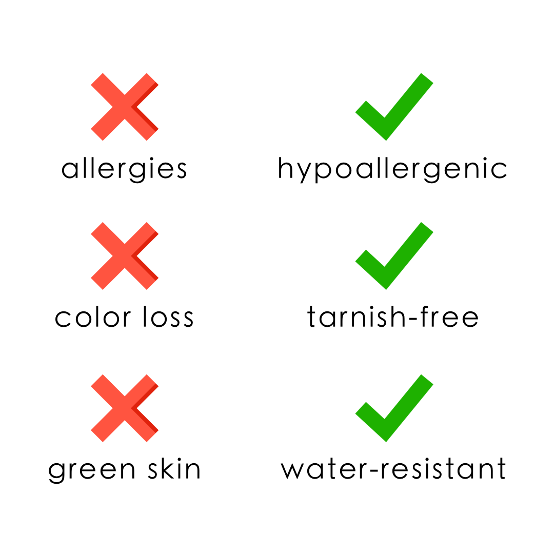Toda nuestra colección de joyas está fabricada en acero inoxidable de alta calidad y recubierta con oro de 18 quilates mediante Physical Vapor Deposition (PVD).